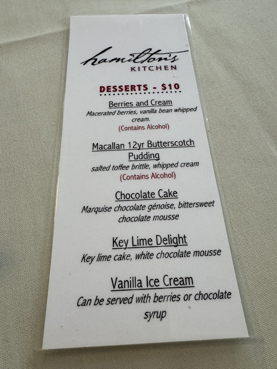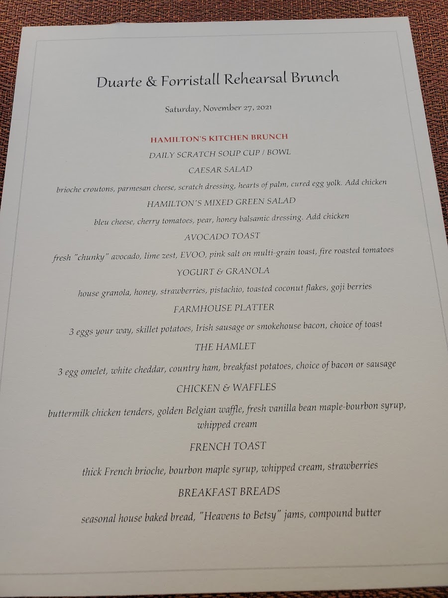 Hamilton's Kitchen Menu