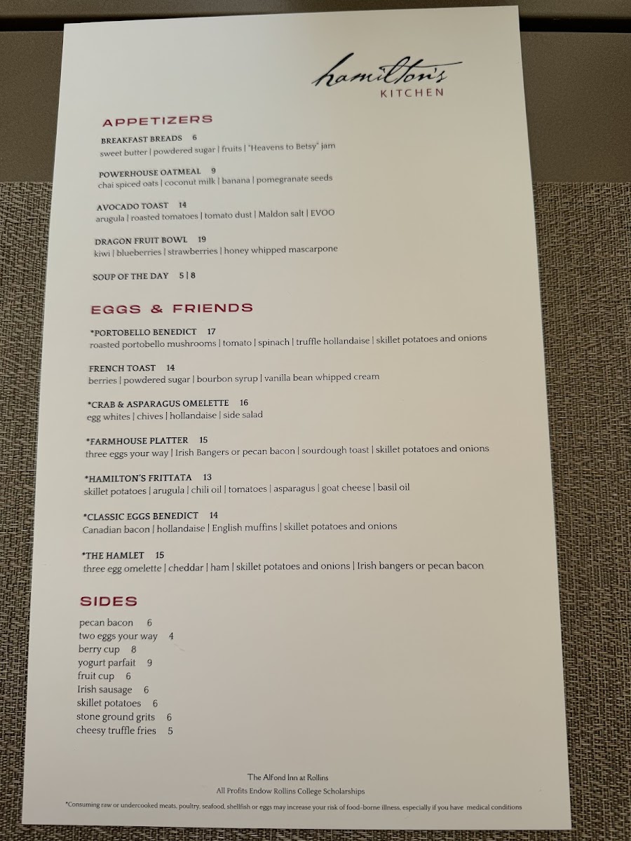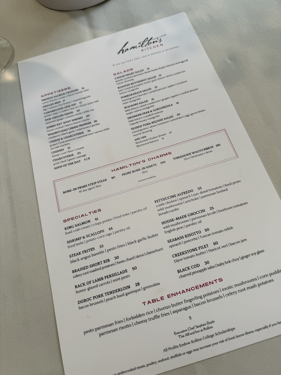 Introducing Hamilton's Kitchen: Nestled in the charming ambiance of The Alfond Inn in Winter Park, FL, Hamilton's Kitchen offers a delightful culinary experience that bridges comfort with elegance. Their menu, bursting with freshness, features a variety of starters, mains, and salads that celebrate locally sourced ingredients.